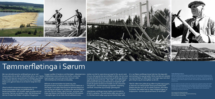 Skiltene belyser historien fra steinalder, vikingtid og framover. De forteller i tekst og bildere om den flerehundreårige fløtertradisjonen ved Bingen lenser, om kulturlandskapet langs elva og om fisk og fugler i vår del av Glommavassdraget. Prosjektansvarlig Erik Vea ønsket velkommen, og ordfører Mona Mangen klippet over snora før de mange frammøtte tok beina fatt nedover langs elva til Lushammeren. Gangveien har blitt og rettet ut og gitt fast grusdekke helt ned til Barvika, sommerens bade- og grillsted for mange. Derfra går det god gangsti videre med bru over evjer og bekkefar. Verdt å merke seg er at det ikke er lov å sykle noe sted på strekningen Bingsfoss-Hammeren.